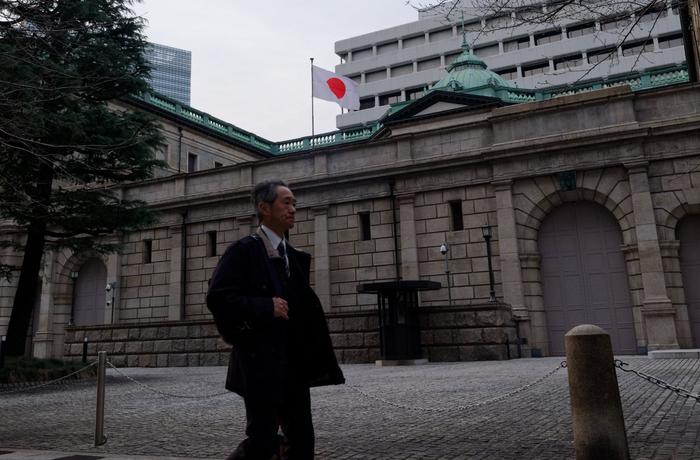 3月19日,一名行人从日本东京的日本银行总部前走过。新华社记者张笑宇摄 第二,日本货物贸易、服务贸易持续逆差。最新数据显示,日本货物贸易2021-2023连续3个财年呈现贸易逆差;2023年形势虽较上年明显缓和,但货物与服务逆差额合计仍有9.8万亿日元。