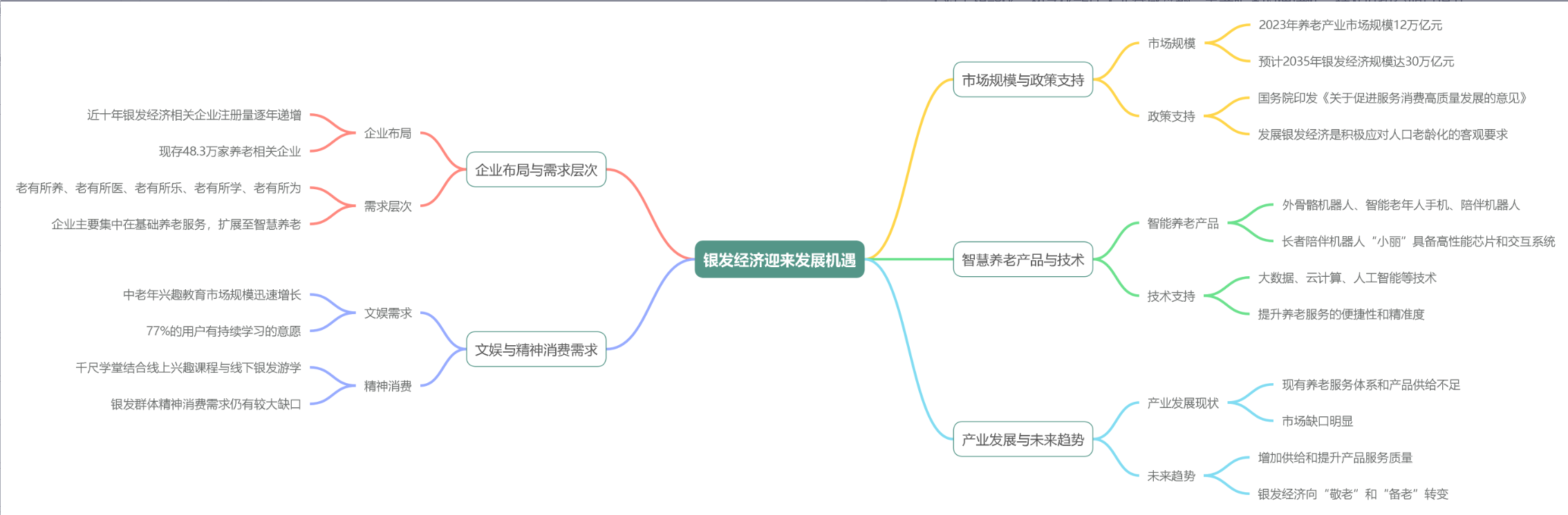 随着中国老龄化进程的加快,银发经济正迎来前所未有的发展机遇。市场规模预计到2035年将达到30万亿元左右,占同期GDP比重约为10%。国务院印发的《关于促进服务消费高质量发展的意见》提出,要大力发展银发经济,促进智慧健康养老产业发展,进一步为银发经济的发展提供了具体指导。