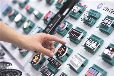 8月16日,观众在第十届中国电子信息博览会上参观数码管显示屏。当日,第十届中国电子信息博览会在深圳会展中心开幕。本届展览以“奋进十载 智创未来”为主题,展会面积达10万平方米,1400余家企业参展。(来源: 经济参考报)