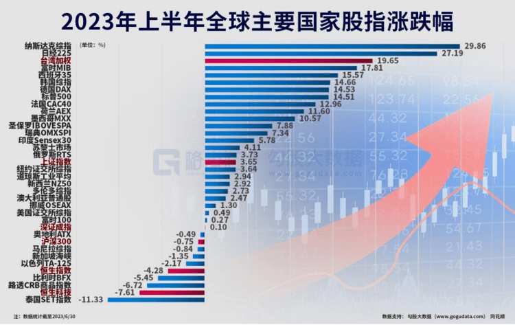 特别需要提到的,是日经指数,这个低迷了近30年的股市指数,今年上半年迎来了久违的反转,在全球各大股指中的涨幅排名第二,仅次于纳斯达克指数。