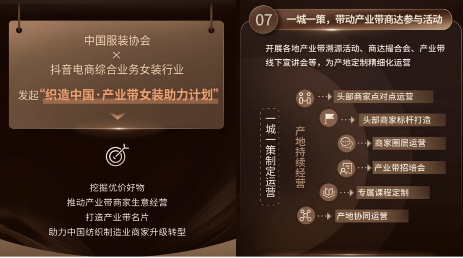因此,无论对于已经实现生意增量、寻求品牌化发展的产业带商家,还是处在数字化转型初期的商家而言,依托电商平台的助力都是必经之路,抖音电商综合业务女装行业的织造中国·产业带女装助力计划,可谓应时而生。