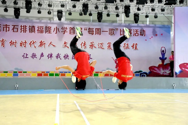 世界跳绳冠军岑小林和张敬威到石排福隆小学表演花式跳绳