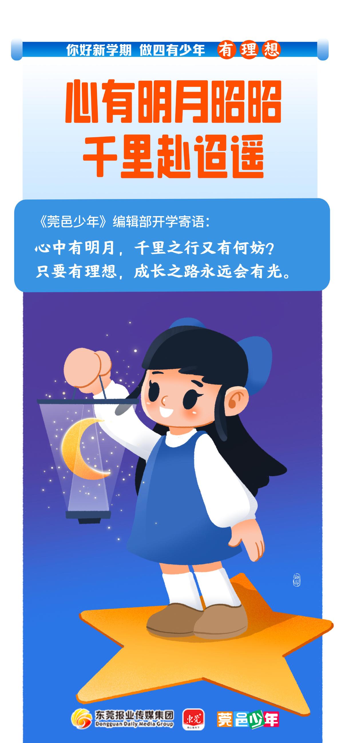 “心有明月昭昭,千里赴迢遥”,古语有言,心中有一盏明月,便可借着那盏明月的光去奔赴千里迢迢的远方。其实,明月就是我们的精神支撑或理想追求,尽管通往梦想的道路荆棘丛生,但只要心中有了这个动力,梦想将发出耀眼的光芒,照亮前行的方向,就能够支撑自己去奔赴千里之外。“坚持真理、坚守理想”,伟大建党精神引领着我们的前进。而作为新一代的青少年,树立理想,志存高远,也是成长过程中的重要一步。在新的学年里志存高远,携梦起航,你就是最美的追梦人。