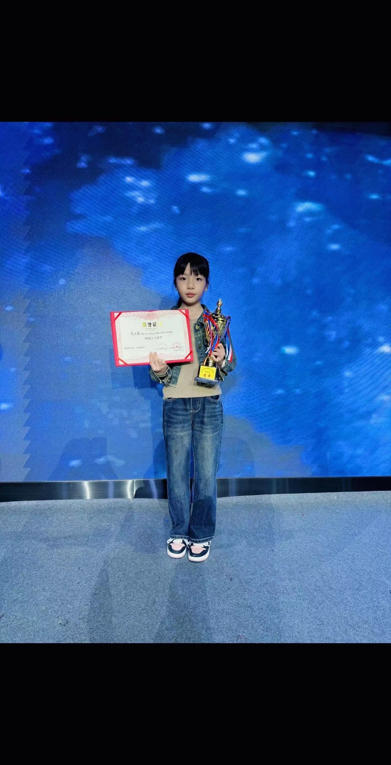 在少儿明星盛典舞台上的她