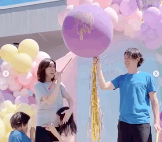 在这场迎婴派对上,钟嘉欣戳破老公手里的气球正式宣告小宝宝是女儿,气球炸开后满是粉色气体散出,钟嘉欣用手捂住女儿的耳朵细节满满,儿子则躲在妈妈身后。