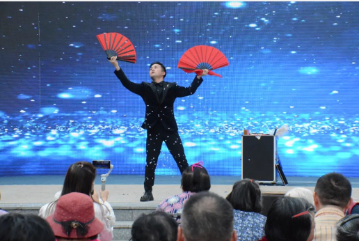 活动现场,还进行机器人互动、舞大刀、歌舞、魔术等表演。观众纷纷拿起手机记录下精彩的瞬间,有的还把拍下的视频即时发到到朋友圈,同朋友分享节日带来的欢乐。同时,活动现场还设有美食集市。鸡蛋仔、钵仔糕、红团、芋头糕等传统美食发出阵阵诱人的香味,吸引了不少群众前来购买与品尝。