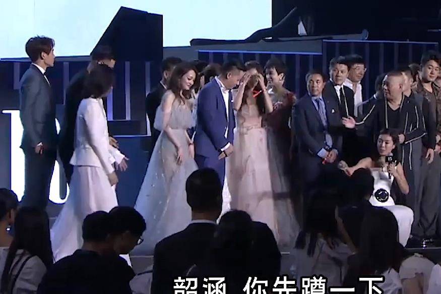 那是2017年的慈善芭莎晚会,因为没有调节好嘉宾们的站位,所以张韶涵机缘巧合之下被挤到了C位。