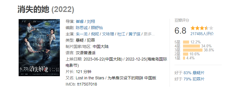 其实这个分数在国产悬疑剧当中不算低了,比如之前林心如演的那部《绣花鞋》评分更是低到了4.4,网上可谓是骂声一片。