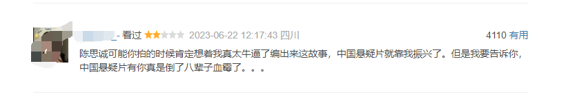 可即便如此,依然有不少网友觉得这部电影太差,甚至还称:中国悬疑片有你是倒了八辈子血霉了。