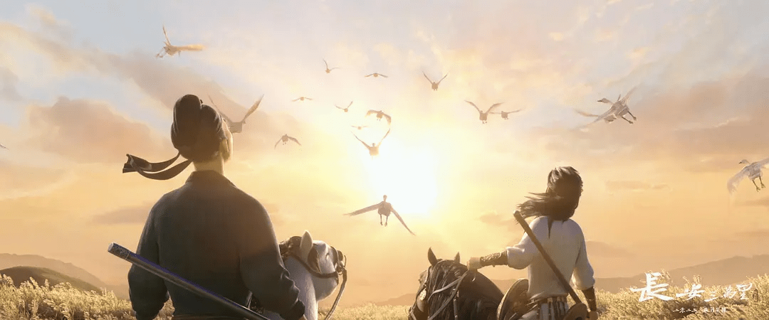 《长安三万里》开场很惊艳,一只鹰在空中翱翔,通过它的眼睛,整个长安城尽收眼底,历史感瞬间扑面而来。
