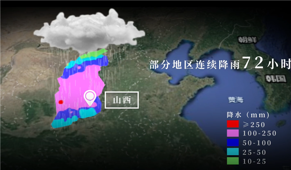 10月2日20时到10月7日8时,山西全省连续遭遇强降雨,最大雨量285.2毫米,117个县(市、区)中有18个降水超过200毫米,不少地方甚至连续下了72个小时。