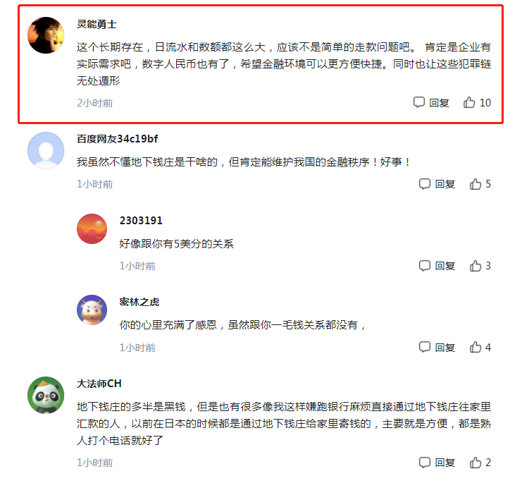 网友评论:这个长期存在,日流水和数额都这么大,应该不是简单的走款问题吧。 肯定是企业有实际需求吧,数字人民币也有了,希望金融环境可以更方便快捷。同时也让这些犯罪链无处遁形