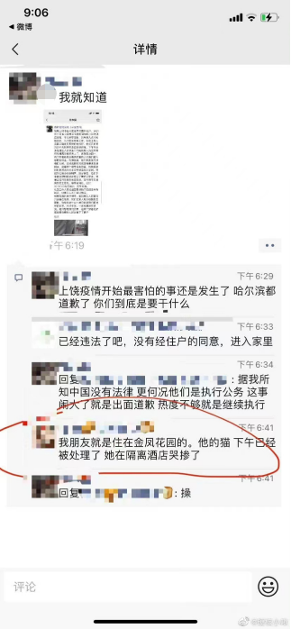 另据东方网记者了解到,与傅小姐同住金凤花园的网友也遭遇了类似的情况,“我也是从家里监控看到他们(防疫人员)拿着黄色塑料袋和铁棍进来(家)了。”