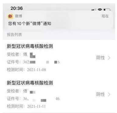 12日,傅小姐曾向东方网记者出示了其24小时内的核酸检测报告,报告显示其检测结果为阴性。