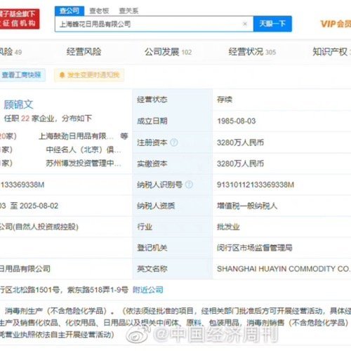天眼查App显示,蜂花关联公司为上海蜂花日用品有限公司,法定代表人均为顾锦文,由顾锦文与顾然峰共同持股。值得注意的是,已成立36年的这家公司,目前无一条行政处罚信息。
