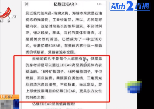 甘文斌还表示,虽然亿蝶美体内衣宣传具备一定的功能性,却并不能治病。一些商家表示有患者穿戴美体内衣后发生问题,这与产品本身无关。