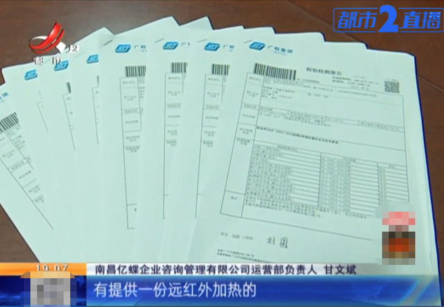 南昌亿蝶企业咨询管理有限公司运营部负责人 甘文斌:有提供一份远红外加热的,这个产品的质检报告给他们了。当时他要得比较急,我们就把一份电子版的给他了,甚至没有盖章。