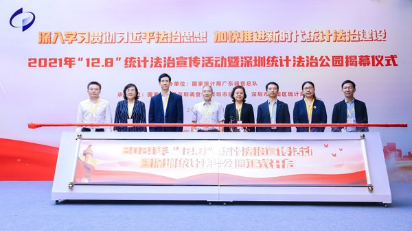 12月8日下午,广东首家统计法治公园揭幕暨 “12.8”统计法治宣传活动在深圳市福田区景田法治公园广场举行。活动由国家统计局广东调查总队主办,深圳调查队、深圳市统计局、福田区统计局联合承办。广东调查总队一级巡视员杜希双,深圳调查队党组书记、队长赵培亚,深圳市统计局党组书记、局长郭驰,福田区委常委、区政府党组副书记、副区长叶文戈等出席本次活动。