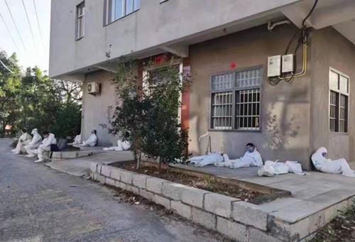 莆田枫亭等地连夜组织核酸检测,医护人员累瘫在地。(图片来源:网络截屏)