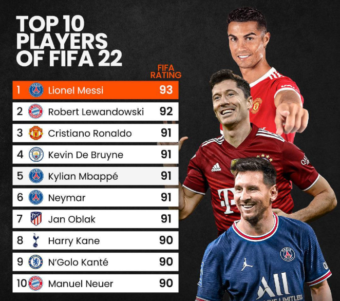 原标题:FIFA22能力值!梅西力压莱万C罗高居第1,被调侃控制了游戏公司!
