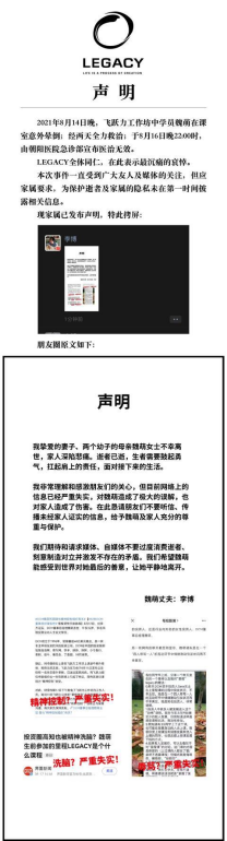 在18日的《声明》中,LEGACY诚泉北京表示,事件受到广泛关注,但应家属要求,为保护逝者隐私未第一时间披露相关信息,导致网络出现很多与事实严重不符的报道和猜测。