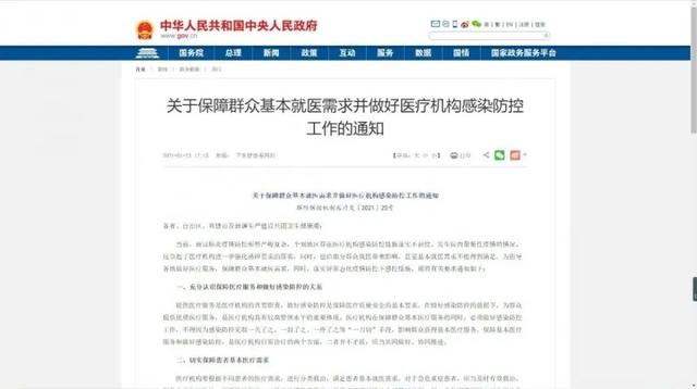 2021年1月,国家卫健委印发的《关于保障群众基本就医需求并做好医疗机构感染防控工作的通知》中就强调,“不得因为感染防控采取一关了之、一封了之、一停了之等‘一刀切’手段,影响群众获得基本医疗服务。对于急危重症患者,应当及时有效救治,医务人员做好防护,不得推诿拒诊”。