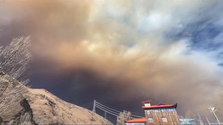 山火引起的烟雾飘到康定市新都桥附近 受访者供图