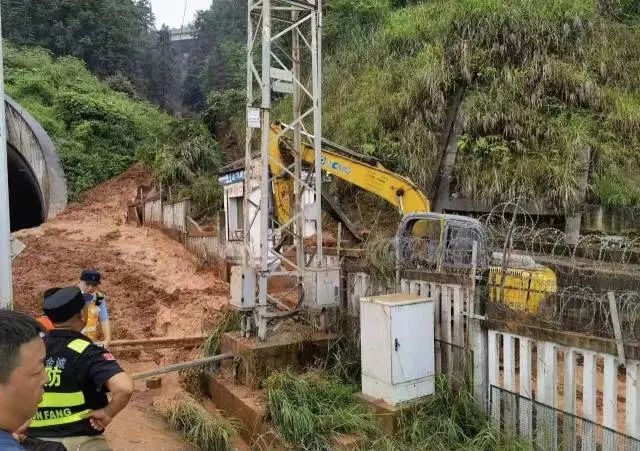 铁路部门正在清理泥石流塌方体