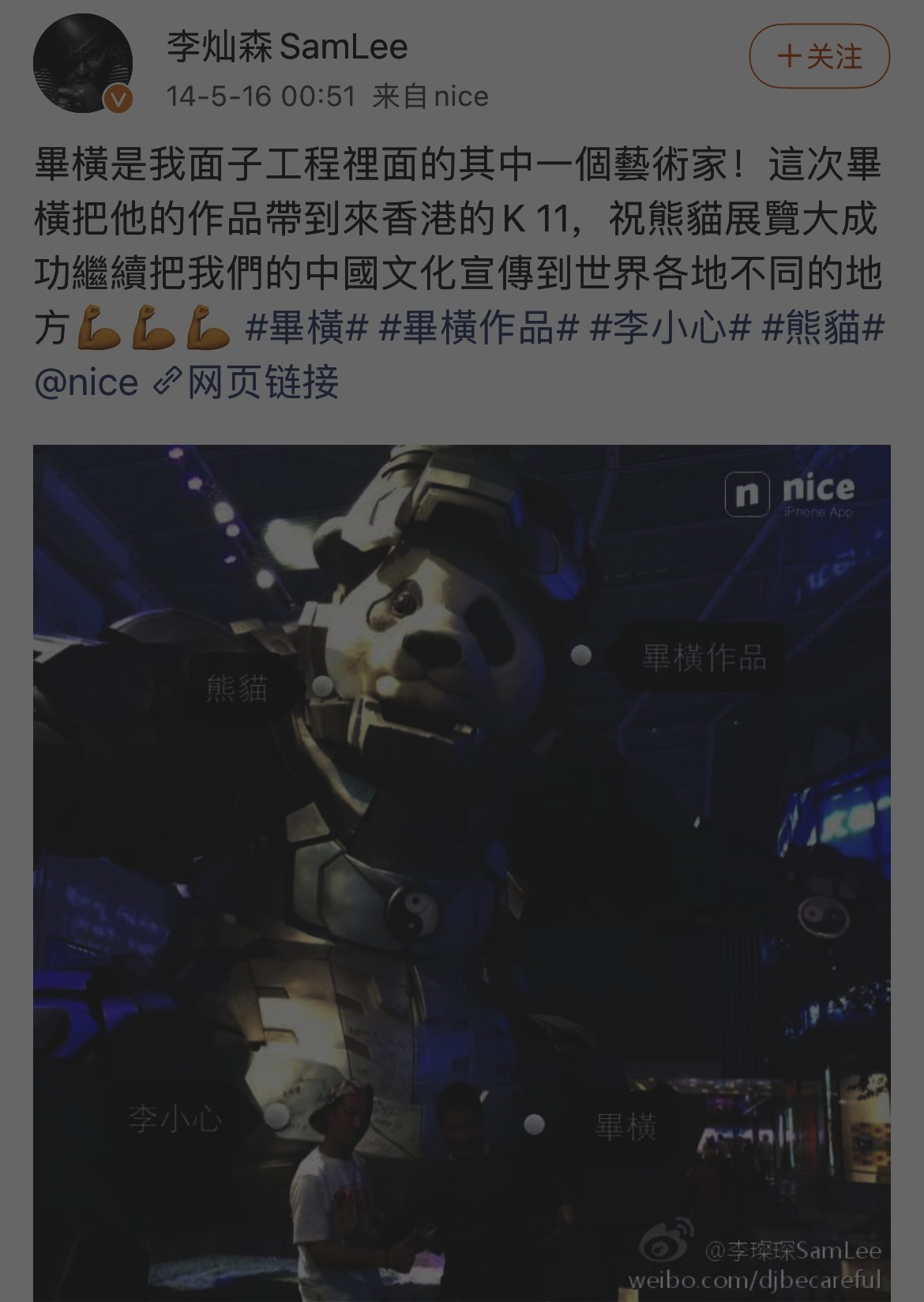 这回发布讽刺短片不是李灿森第一次表态,至少早在2011年开始,他在社交媒体上发布的内容,字里行间都显出其为中国文化、中国身份而骄傲。