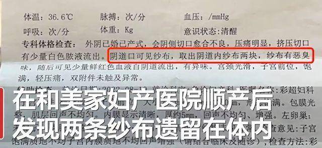 原标题:女子生产后两块纱布被遗留体内 当地回应:院方疏忽