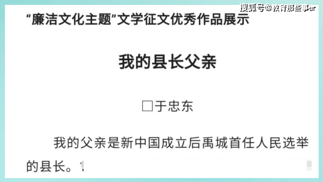 相信于县长如果在世的话,像这种廉洁自律的老一辈肯定是不会允许自己的女儿参加此类征文的。