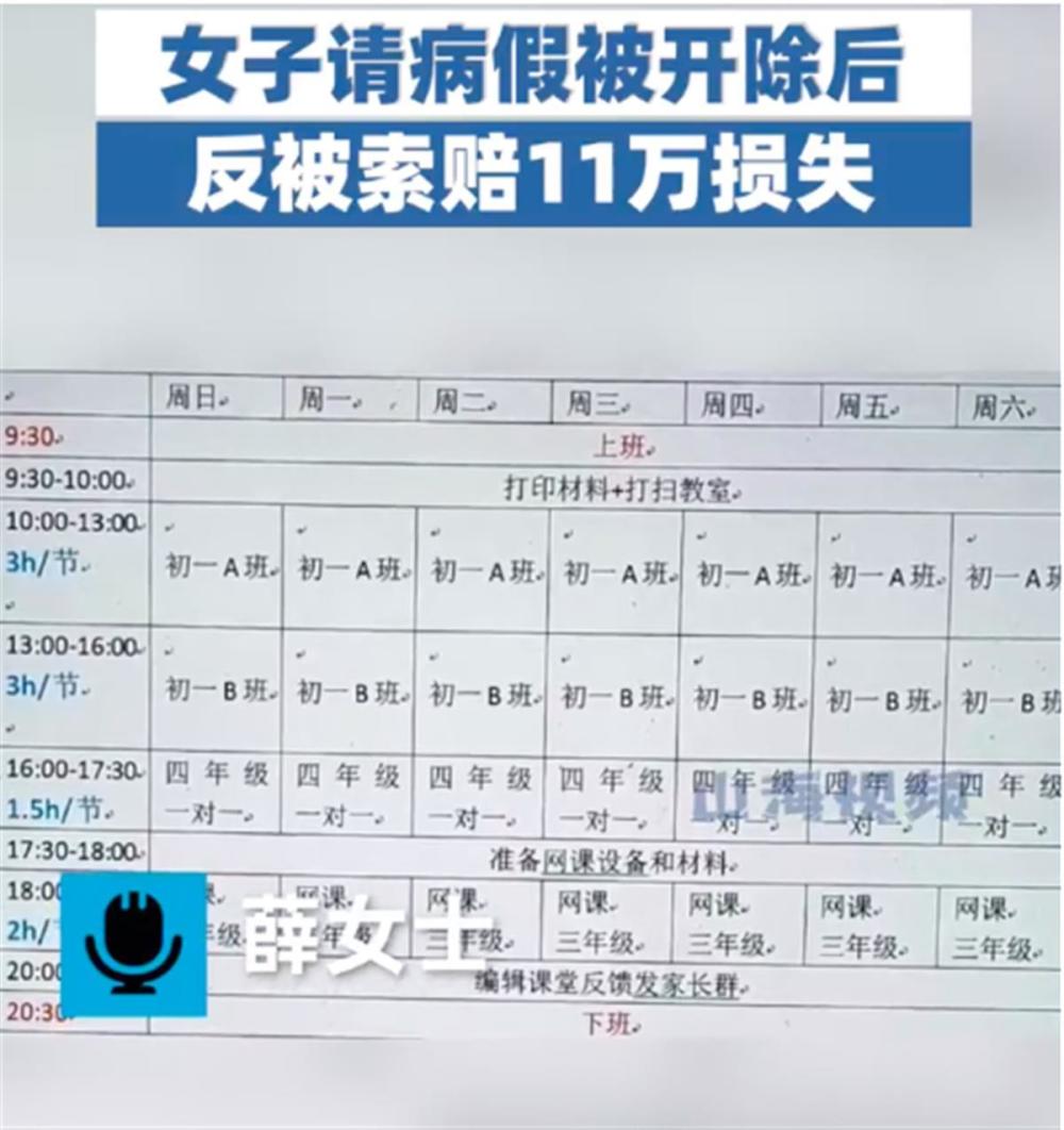 江苏南京的薛女士在一家教培公司工作,因身体不适去医院检查并开具了病假条,休病假3天。但公司认为她是旷工,将其开除且不愿支付拖欠的工资与赔偿金。薛女士随后申请劳动仲裁,没想到该公司以薛女士装病旷工为由反诉其赔偿11万余元损失,截至目前,劳动仲裁胜诉的薛女士还未收到一分钱的赔偿。(据11月17日《山东商报》)