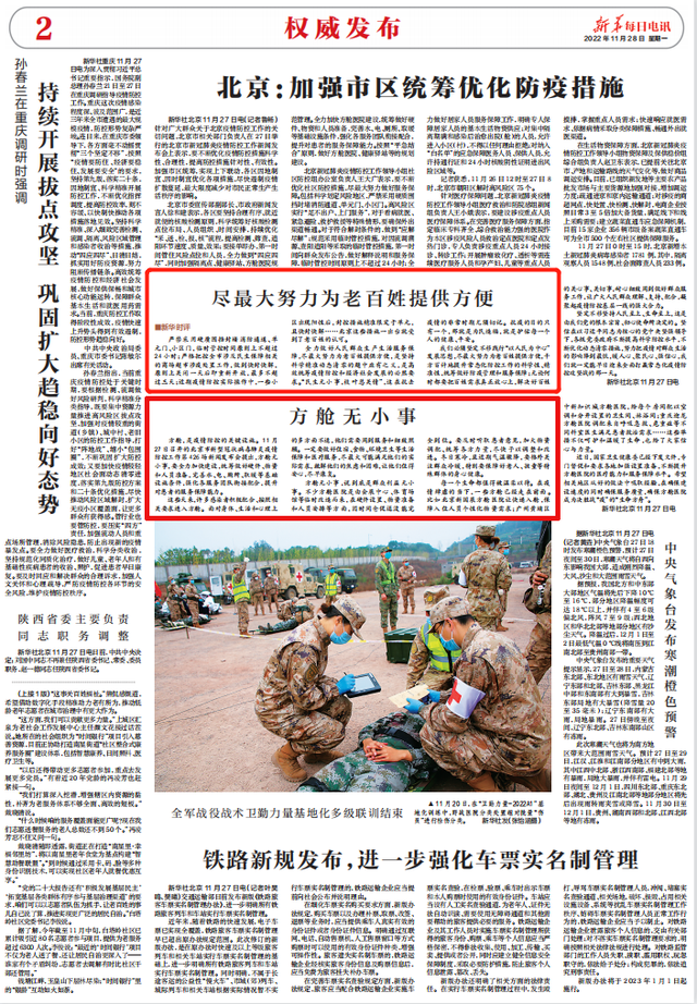 11月28日凌晨,新华社连发三篇时评聚焦疫情防控,指出越是形势严峻复杂,越要保持战略定力。昨夜今晨,人民锐评及人民日报仲音也连发两文,明确以快制快,精准抗疫。