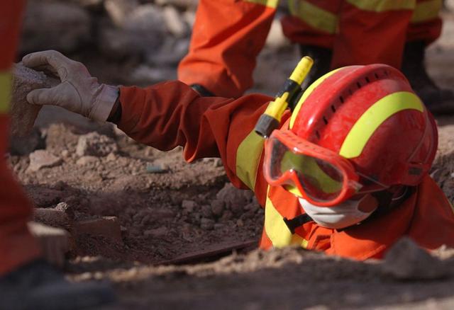 2003年12月29日,一名中国国际救援队队员在伊朗震区巴姆市搜寻幸存者。新华社记者 王雷 摄