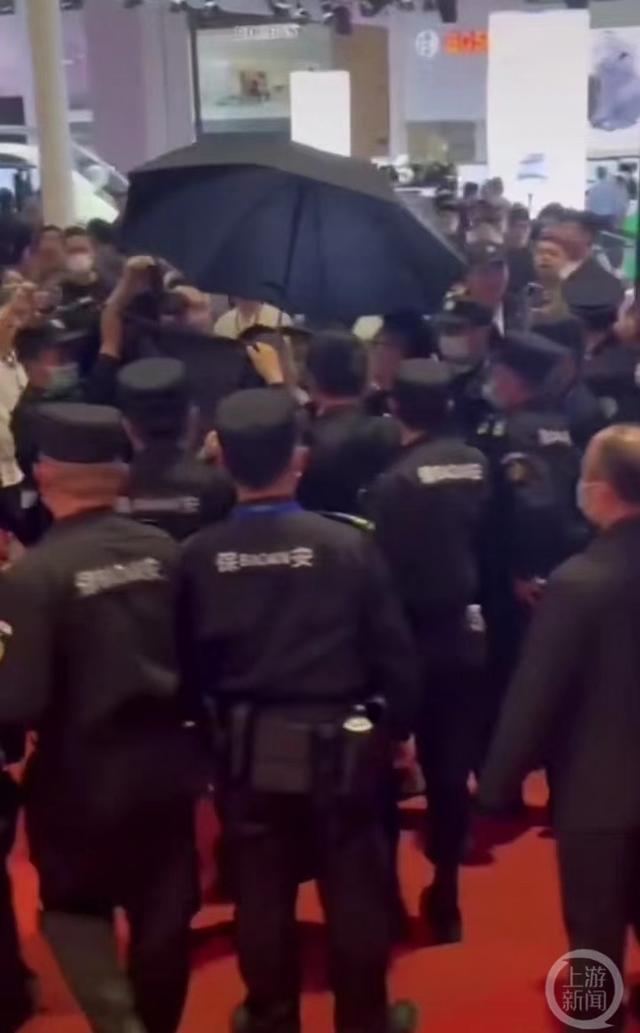 被保安拖出7号馆后,Tongtong依旧被保安围着,直到警方到场,被带到了上海市公安局青浦分局国家会展中心派出所接受问询。