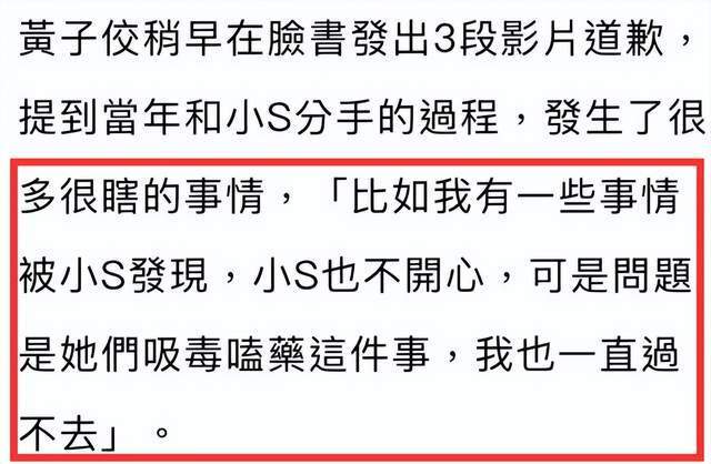 小S前男友黄子佼承认性骚扰并道歉 还爆料大小S吸毒嗑药