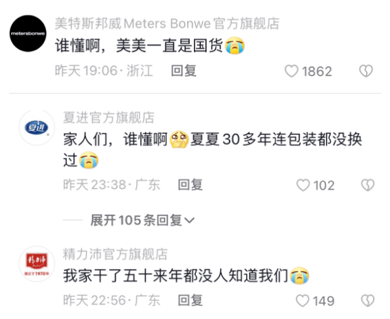 一时间,老牌国货们的直播间和评论区,好不热闹。