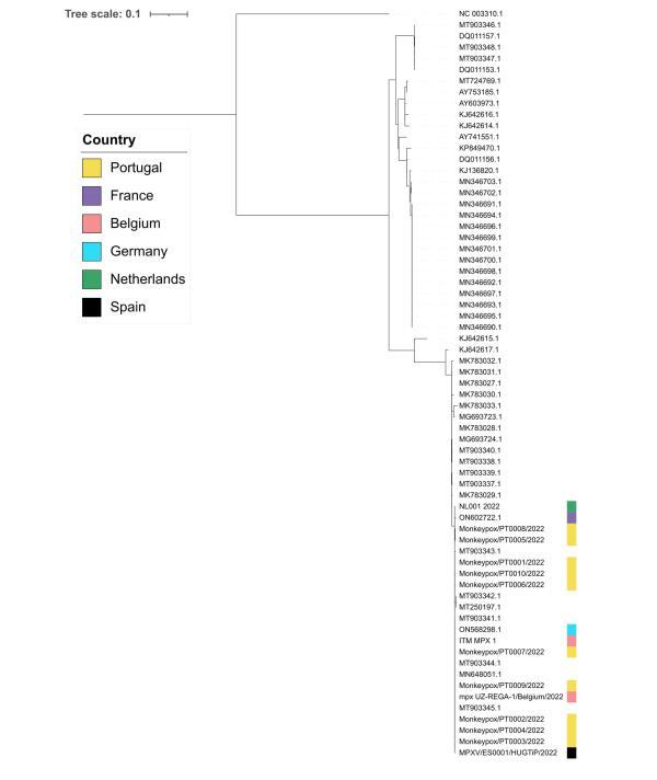 此前,葡萄牙国家卫生研究所的约翰.保罗.戈麦斯(Joo Paulo Gomes)及其同事已公布了10份葡萄牙猴痘患者携带的猴痘病毒基因组测序报告,并分析指出,本轮猴痘疫情暴发极有可能来自一个源头。