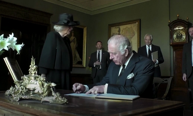 这已经不是查尔斯第一次当众表达自己的愤怒情绪。9月10日,英国国王查尔斯三世在圣詹姆斯宫正式宣誓登基。他在签署文件确认誓词时,由于桌子面积有限,桌上的笔盒给查尔斯三世造成了困扰,他随即“怒视”助手,示意其清理桌面。