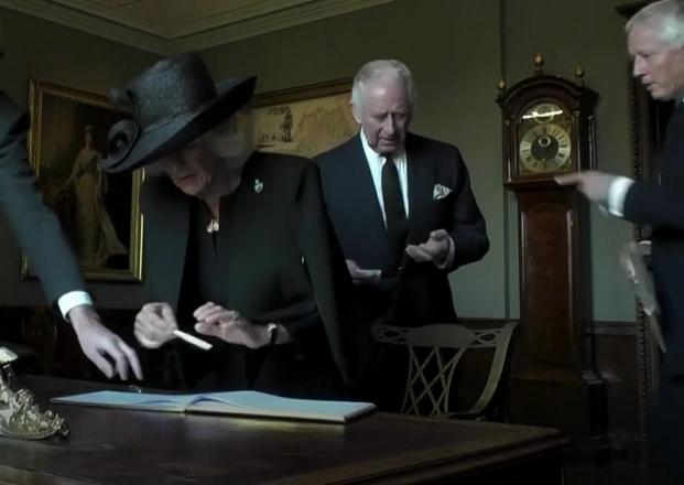 英国国王查尔斯三世于当地时间13日抵达北爱尔兰地区并展开访问。据报道,查尔斯国王当天在贝尔法斯特一处城堡举行了签字仪式,当他在一本访客留言簿上签字时意外发生了:查尔斯先是询问“今天是12日吗?”,身后有人说道“13日”。“哦,天哪,我记错日期了。”查尔斯说道,而卡米拉也在一旁说,“你之前写了12日”。