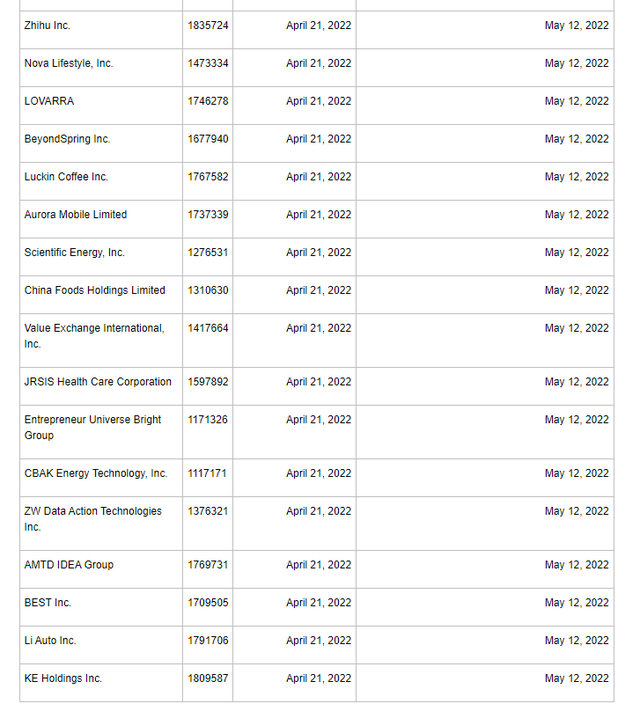【持续打压中概股!美国SEC再将理想汽车等17家公司列入“预摘牌名单”】财联社4月22日电,美国证劵交易委员会(SEC)当地时间4月21日再将理想汽车、百世集团和贝壳等公司加入“预摘牌”名单,这是自3月以来第五批被纳入名单的中概股公司。具体名单为:知乎、诺华家具、LOVARRA、万春医药、瑞幸咖啡、极光、Scientific Energy、中国食品、Value Exchange International、泽尔西西医疗集团、Entrepreneur Universe Bright Group、中比能源、中网载线、尚乘国际、百世集团、理想汽车和贝壳。SEC声称,上述17家公司提交申辩的截止时间为当地时间5月12日。