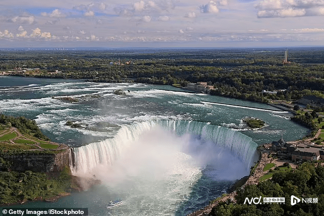 尼亚加拉大瀑布。左边是美国一侧,右边是加拿大一侧。