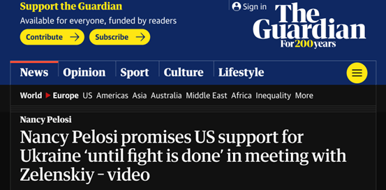 《卫报》:南希·佩洛西在会见泽连斯基时承诺,美国将支持乌克兰“直到战斗结束”