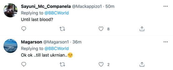 一些与该名英国网友持相似看法的人评论道,“直到(乌克兰人流尽)最后一滴血?” “好的,好的......直到(剩下)最后一个乌克兰人。”↓