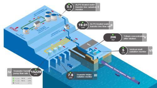 福岛核污水排放部分实时数据 截图自IAEA官网