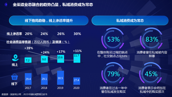 另外,透过《白皮书》中腾讯、阿里为代表的数字化零售玩家的案例,我们可以比较清晰地看出这样一种发展脉络。当新零售数字化刚刚起锚的阶段,我们看到的是,腾讯、阿里更多地关注如何借助数字营销对流量进行挖掘和转化,公私域流量的精准划分、数字营销工具的衍生和出现,基本上都是在这样的大背景下诞生的。在完成了这一阶段的发展之后,我们可以非常明显地看出,优化、整合、衍生出新的方式和方法以实现零售行业的深度发展,已成为全新的发展方向。