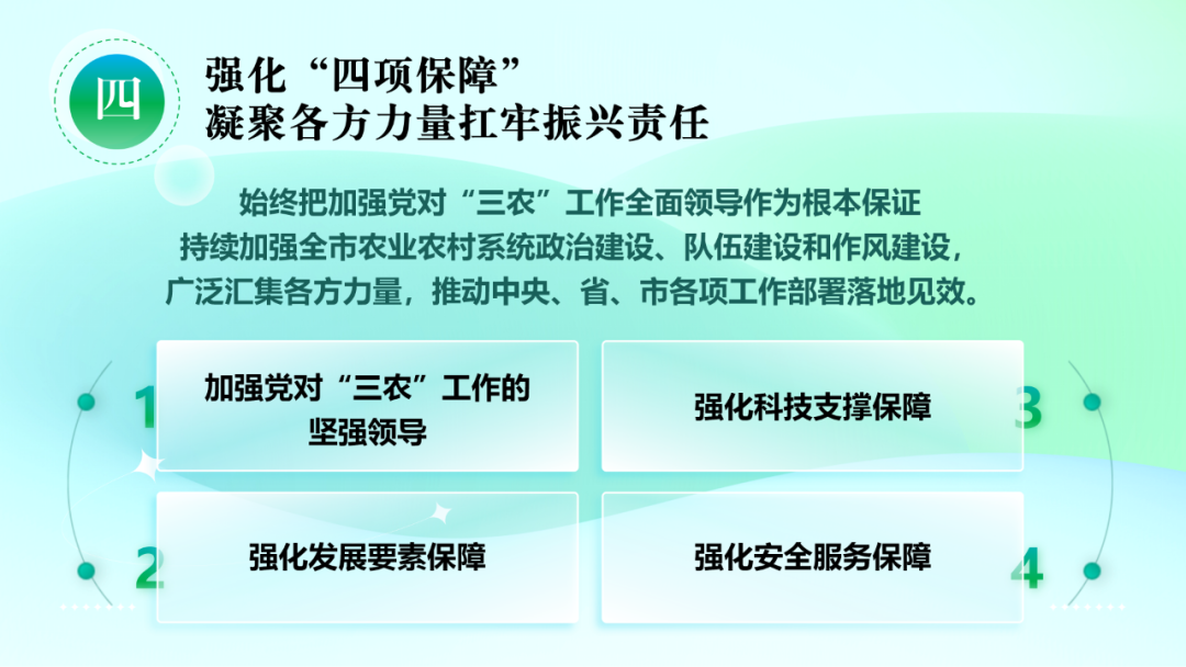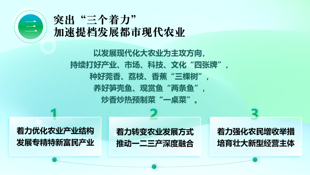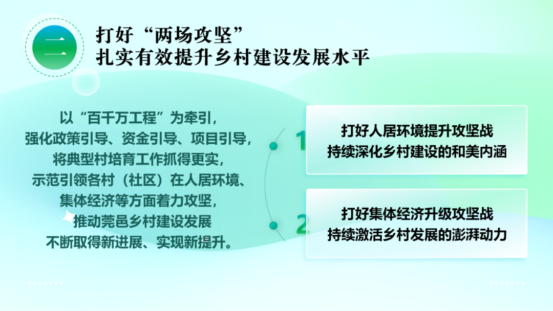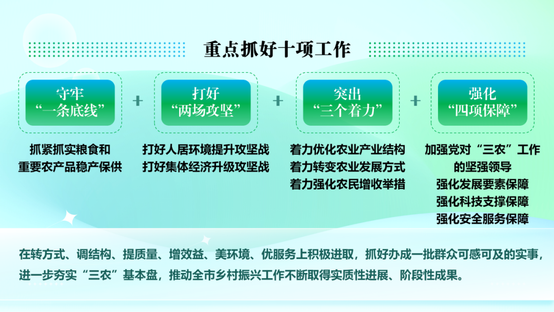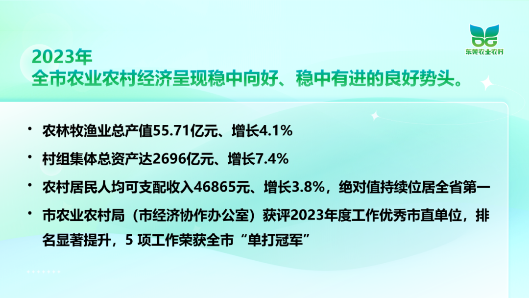 会议强调,2024年,重点要守牢“一条底线”、打好“两场攻坚”、突出“三个着力”、强化“四项保障”,砥砺前行、奋楫争先,全力推动东莞农业农村高质量发展取得新突破。