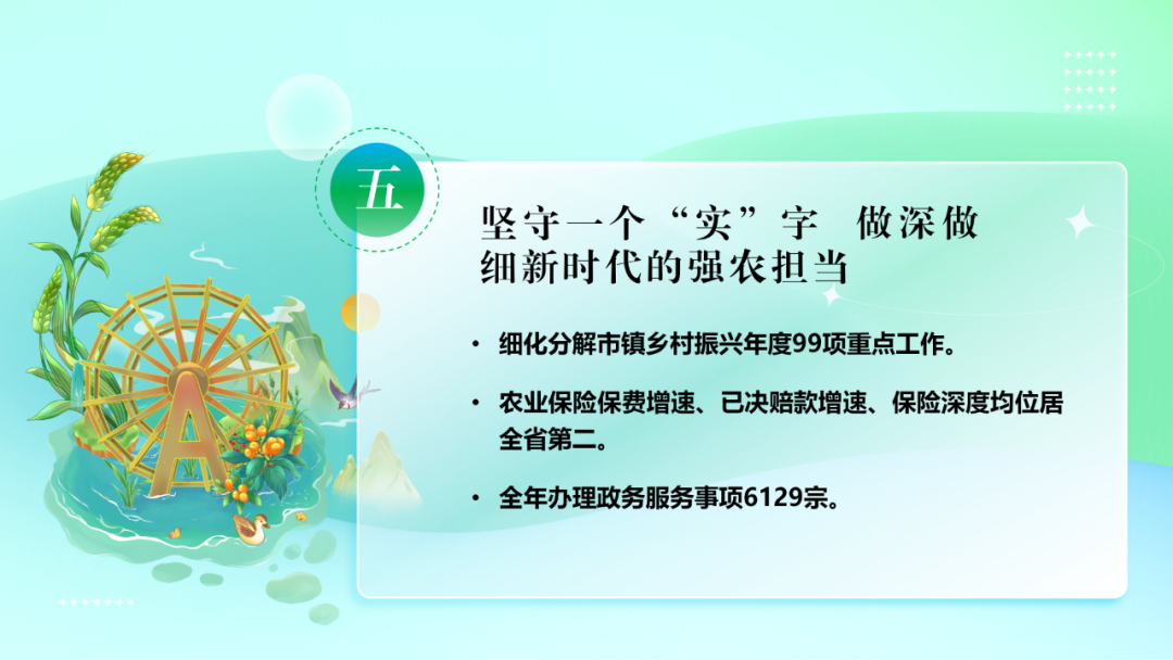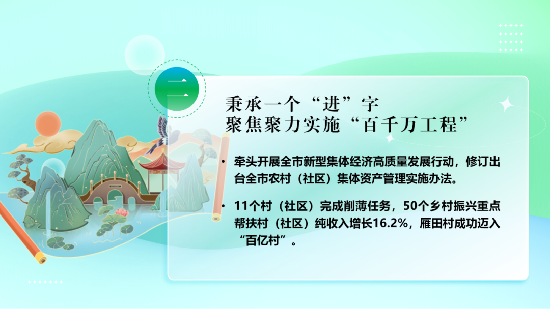 会议指出,2023年,全市农业农村系统扎实有效推动农业农村高质量发展,全市农林牧渔业总产值55.71亿元、增长4.1%,村组集体总资产2696亿元、增长7.4%,农村居民人均可支配收入46865元、增长3.8%,绝对值持续位居全省第一。市农业农村局(市经济协作办公室)获评2023年度工作优秀市直单位,5项工作荣获全市“单打冠军”。