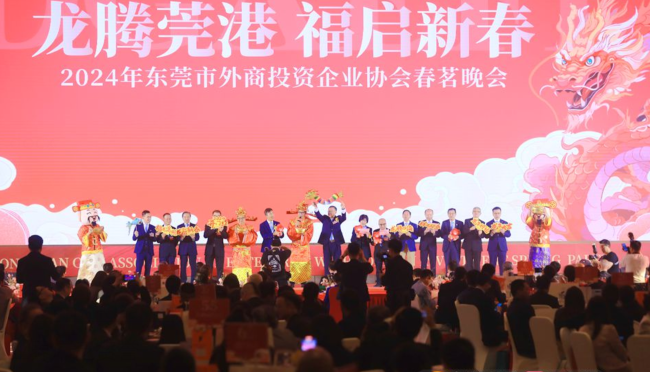 3月20日晚,东莞市外商投资企业协会(以下简称“东莞外商协会”)在东莞迎宾馆举行了“龙腾莞港 福启新春”2024年春茗晚会。广大外商齐聚一堂、分享经验、共创商机。