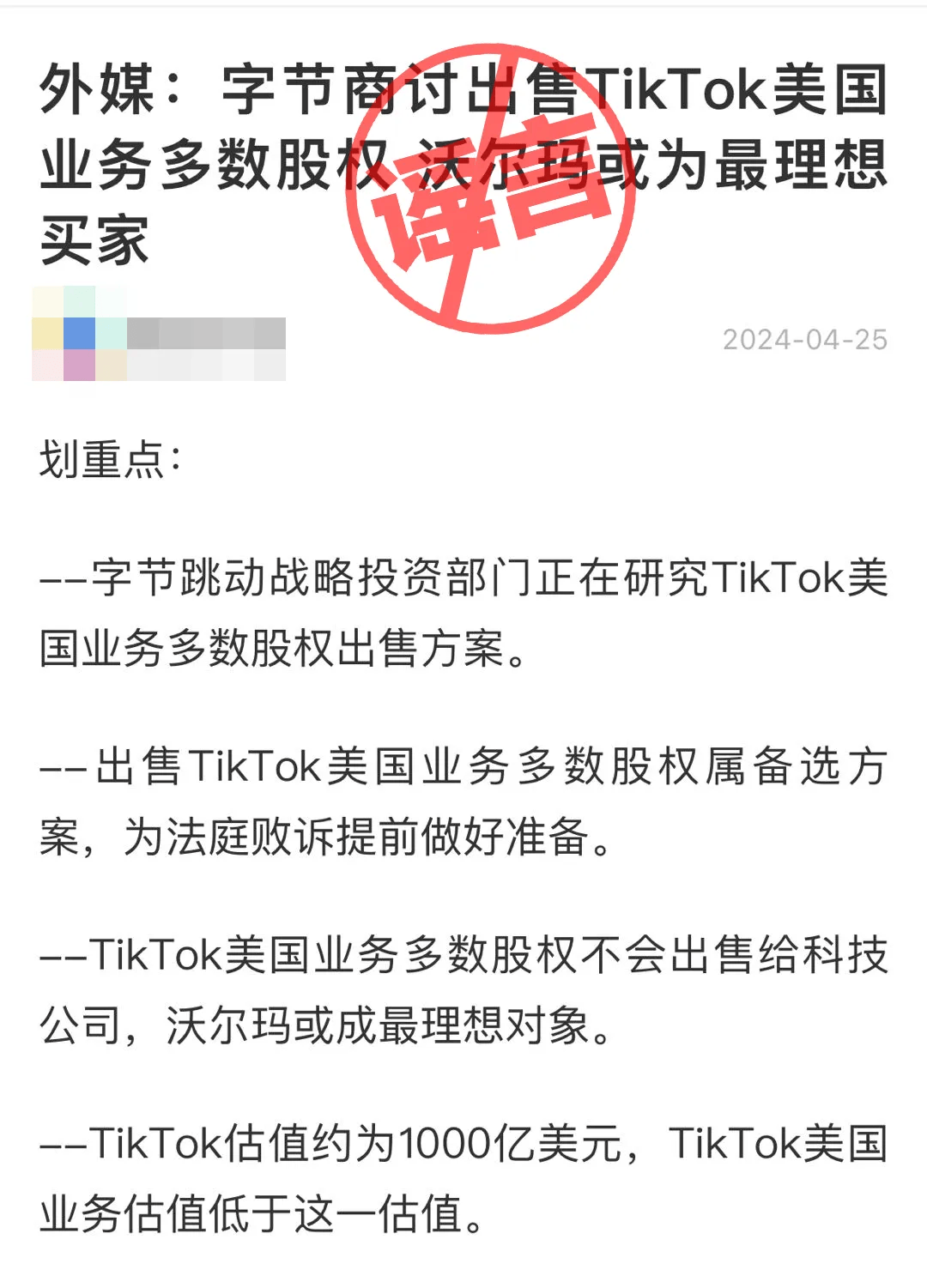 外媒有关字节跳动探索出售TikTok的消息不实,字节跳动没有任何出售TikTok的计划。